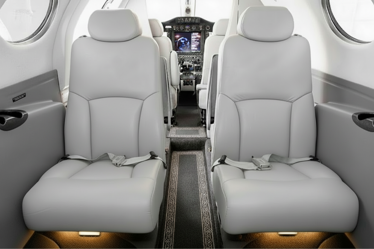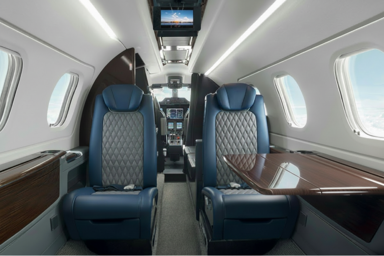 This private turboprop is designed for travelers who value efficiency without compromising comfort. Accommodating up to six passengers, it features a calm, well-appointed cabin ideal for short regional journeys. Its range of up to two hours makes it perfectly suited for quick connections between major European cities, while still offering space for personal luggage.