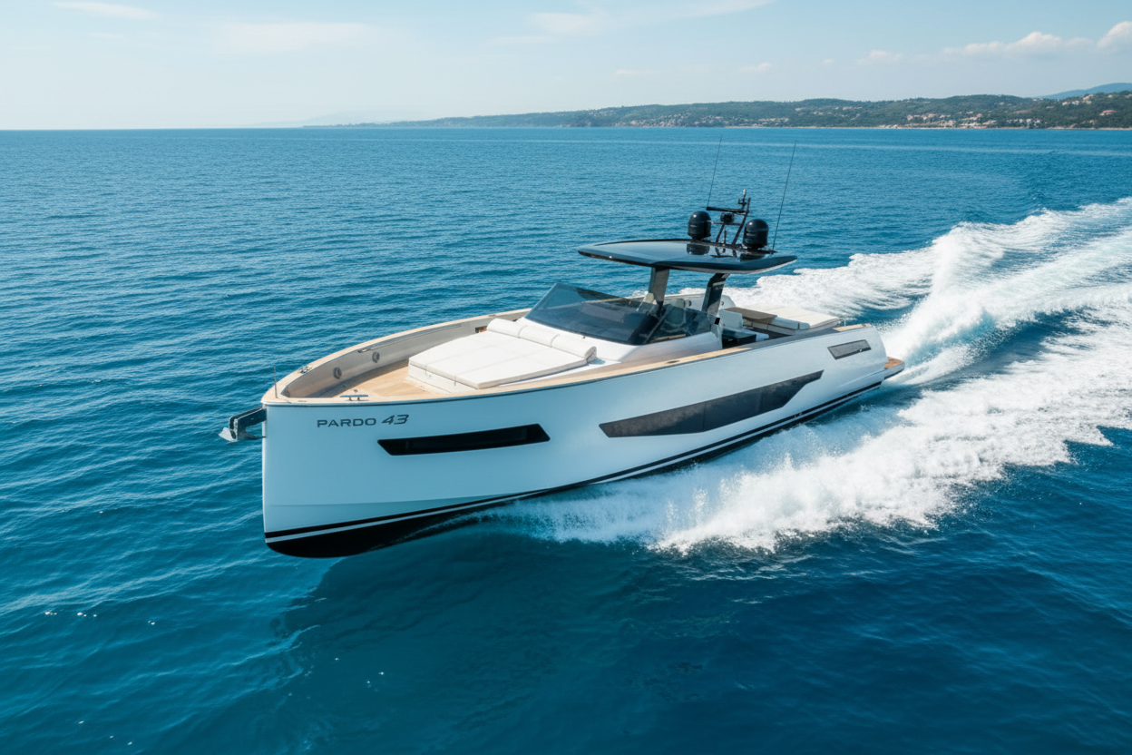 Pardo 43 is a sleek and modern yacht that blends sporty performance with refined comfort. Designed for unforgettable days on the water, she offers stylish outdoor and indoor spaces perfect for socializing, relaxing, and enjoying the sea. With thoughtful layout and quality craftsmanship throughout, the Pardo 43 delivers an exceptional boating experience, whether cruising coastal waters or anchoring in your favorite secluded spot.