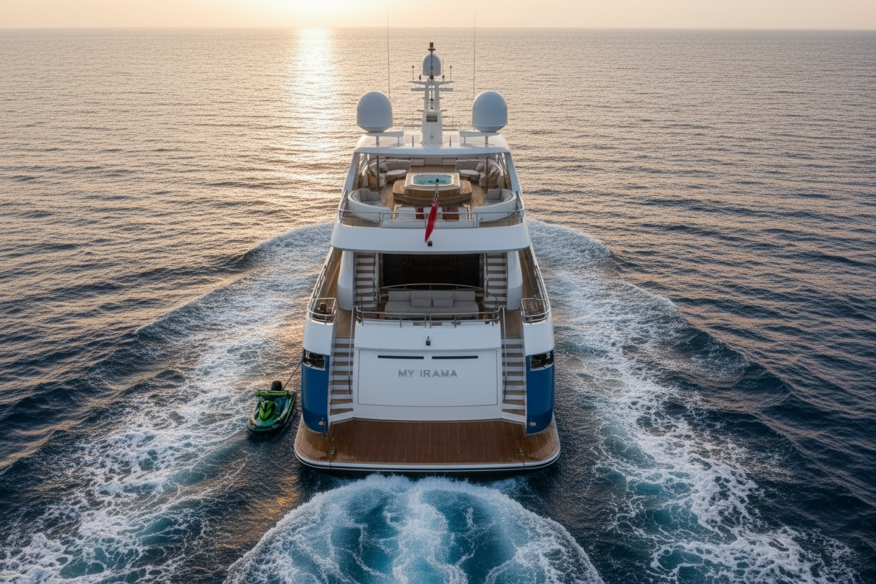 That 42-meter superyacht built by the Turkish shipyard Concept Marine in 2009 and completely refitted between 2020 and 2024, offers a distinguished combination of generous volumes and contemporary high-end finishes. She features a full-beam owner’s suite on the main deck, a spacious VIP cabin on the upper deck with direct private access to the exterior deck, as well as four additional guest cabins on the lower deck, accommodating up to 12 guests in optimal comfort, complemented by a dedicated crew cabin.